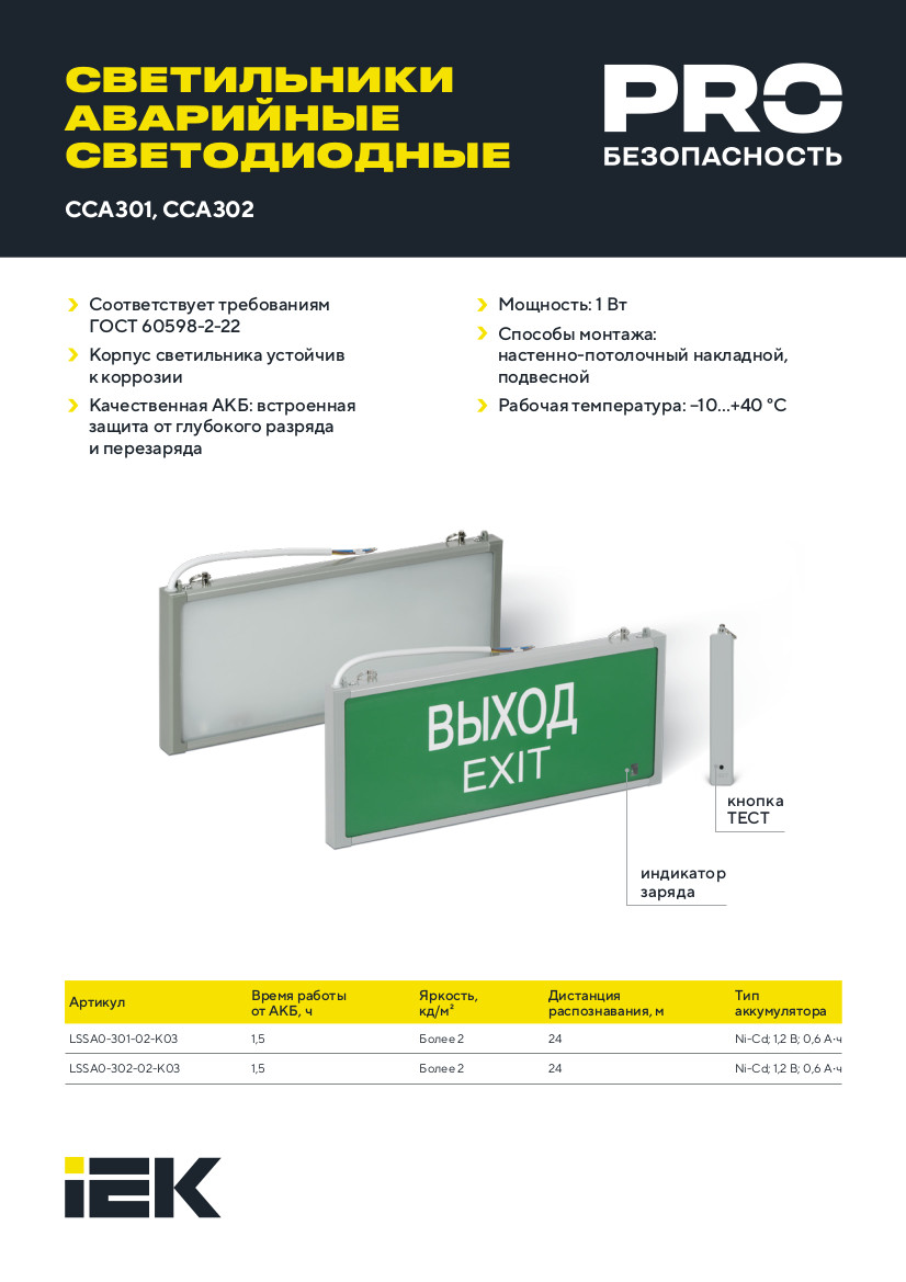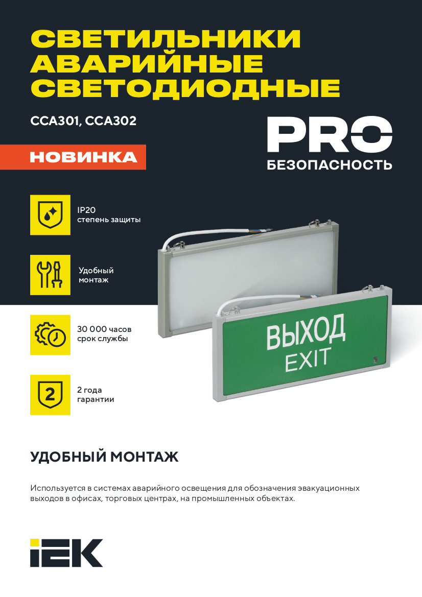 Светильники аварийные светодиодные ССА301, ССА302 IEK