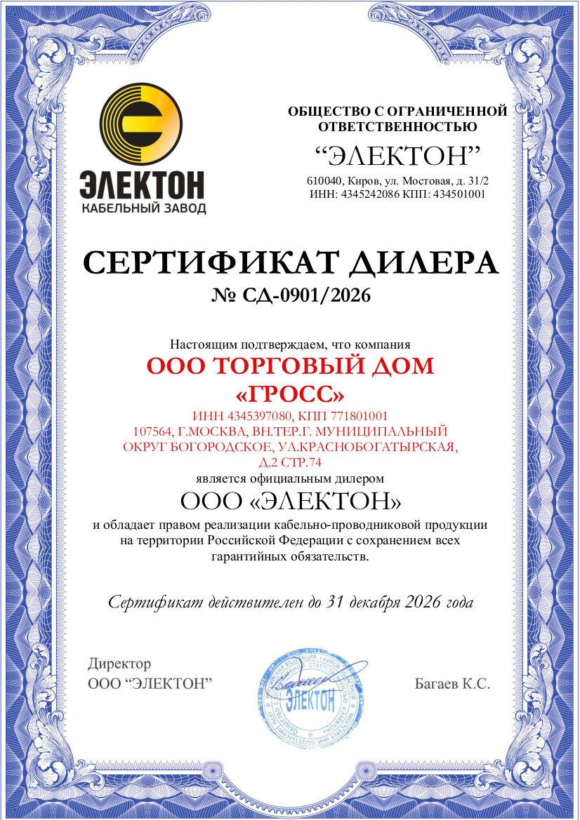 ООО ТД "ГРОСС" является официальным дилером ООО "ЭЛЕКТОН"
